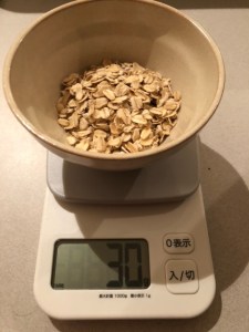 オートミールの30gを計るとき5杯必要となりました。